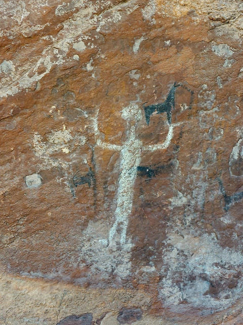 Our final day in town, we do a hike to some caves with rock art, including some from 9,000 years ago! It’s a hot slog up a riverbed that takes a lot longer than we anticipated. We’re underprepared with food but we manage and are rewarded with a beautiful red rock formation, carved by water and some entrancing ochre paintings that remind us so many have been here before. The graffiti alongside the pictographs is a bit of a downer, sadly.